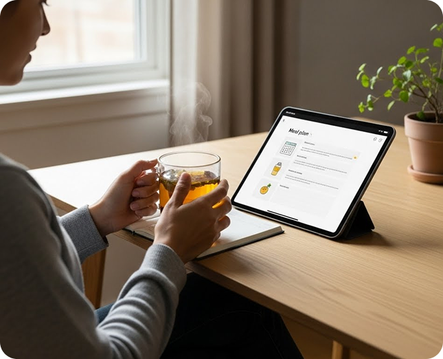 Learn, Prepare & Reflect. Explore anti-inflammatory education, plan upcoming meals and reflect on how your body responded — so you move forward with clarity, not guesswork.